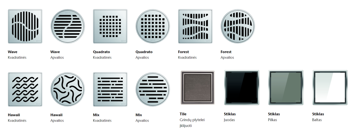 ACO Easyflow trapu dangteliai ir groteles